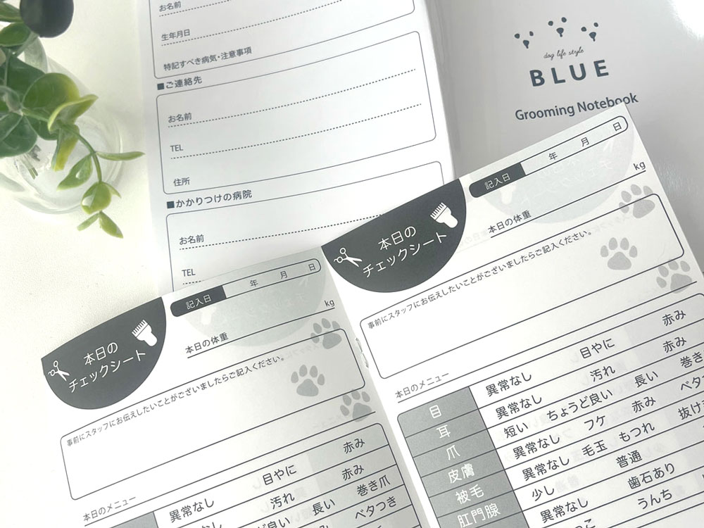 2026.04.28 制作実例 大分県中津市ドッグライフスタイルブルー様のトリミングノート lbdo_petta 大分県中津市にありますドッグライフスタイルブルー様のトリミングノートを作成させていただきました!お店のネイビーと白のコンセプトカラーにぴったり!記録が楽しくなるノートができました。豊富なノートのテンプレートでお店にぴったりなデザインを見つけてくださいね!LBDOサロン販促物専門店 #トリミングノート ABOUT ME PETTA by LBDOペッタこんにちわ。ペッタです。こちらはサロンやお店の販促物専門店LBDOの姉妹店になります。ドッグサロンをはじめペット業界の販促物やウェブデザインを可愛く、リーズナブルに作成いたします。